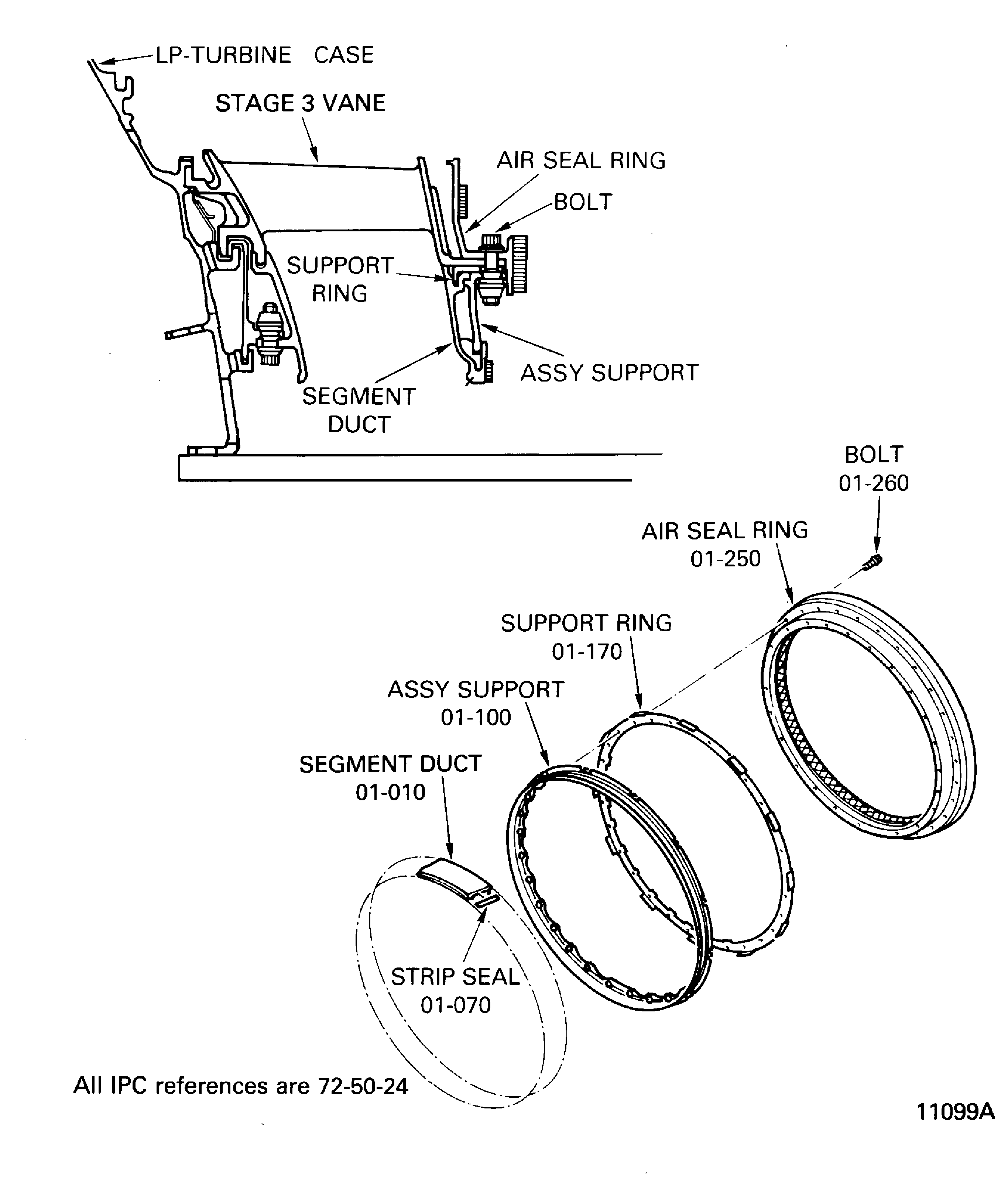 Install the eight strip seals to the eight diffuser outer duct assembly supports. Use the CoMat 10-062 ASSEMBLY FLUID.